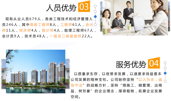 質(zhì)量求生存,以信譽(yù)求發(fā)展,以速度求效益是本公司發(fā)展的精神支柱。公司始終堅(jiān)持“以人為本,誠(chéng)信守法”的戰(zhàn)略方針,堅(jiān)持“精施工、細(xì)管理、出精品、樹(shù)形象”的企業(yè)理念,厚德載物,拓展企業(yè)發(fā)展空間。